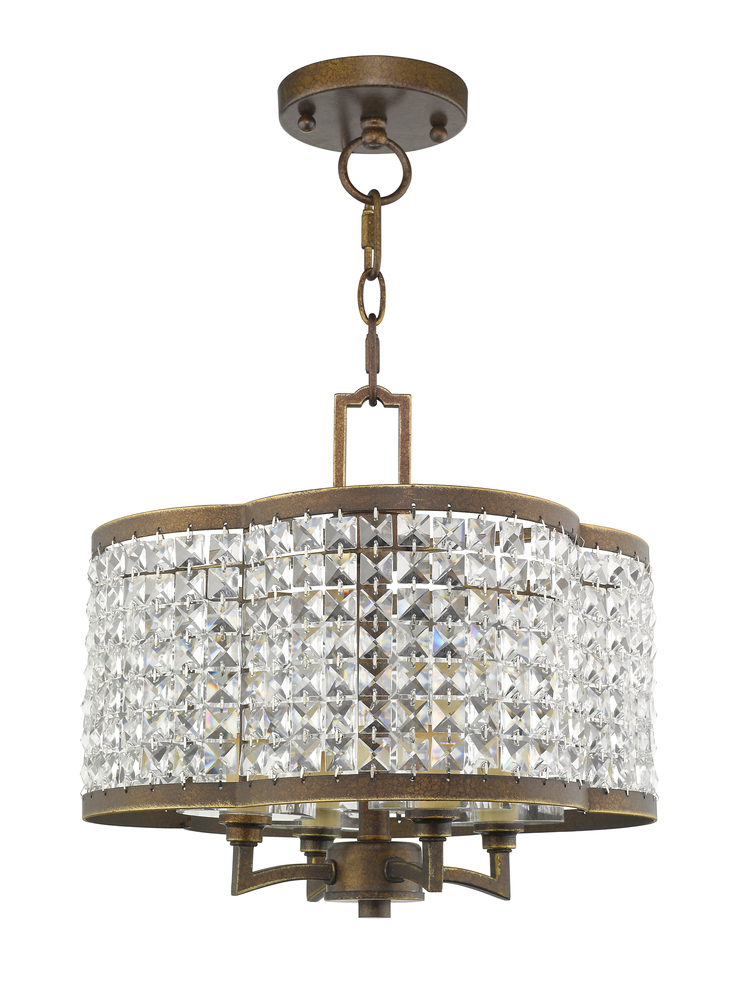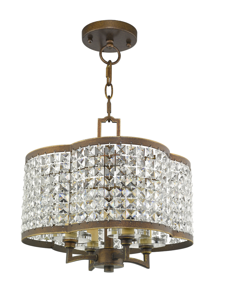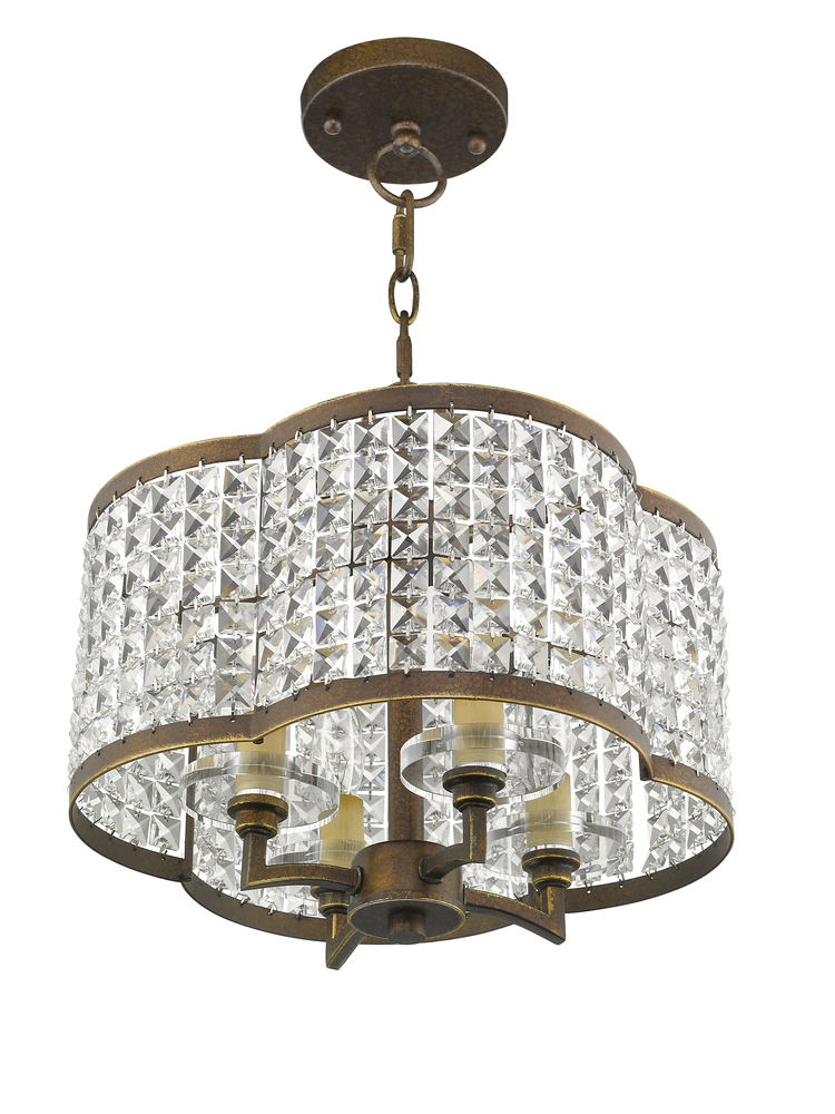 Crystal Strands Strung In A Decrotive Shade Design Define This Classically Glamorous Mini Chandelier/Semi Flush Mount In Which The Bulbs Are Completely Shaded, Allowing The Light To Shine Through The K9 Crystal For A Warm, Intimate Lighting Feel.