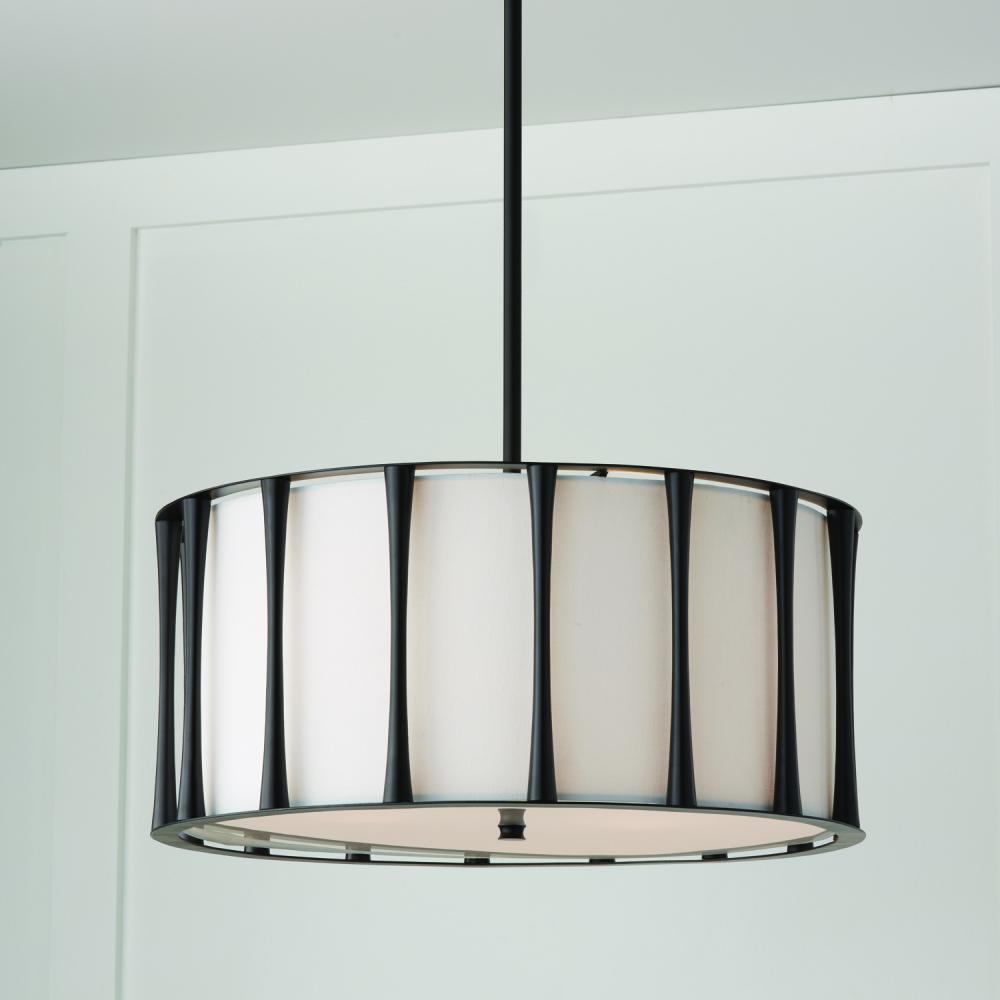 24.5"W x 11"H 4-Light Pendant in Matte Black with White Fabric Shade