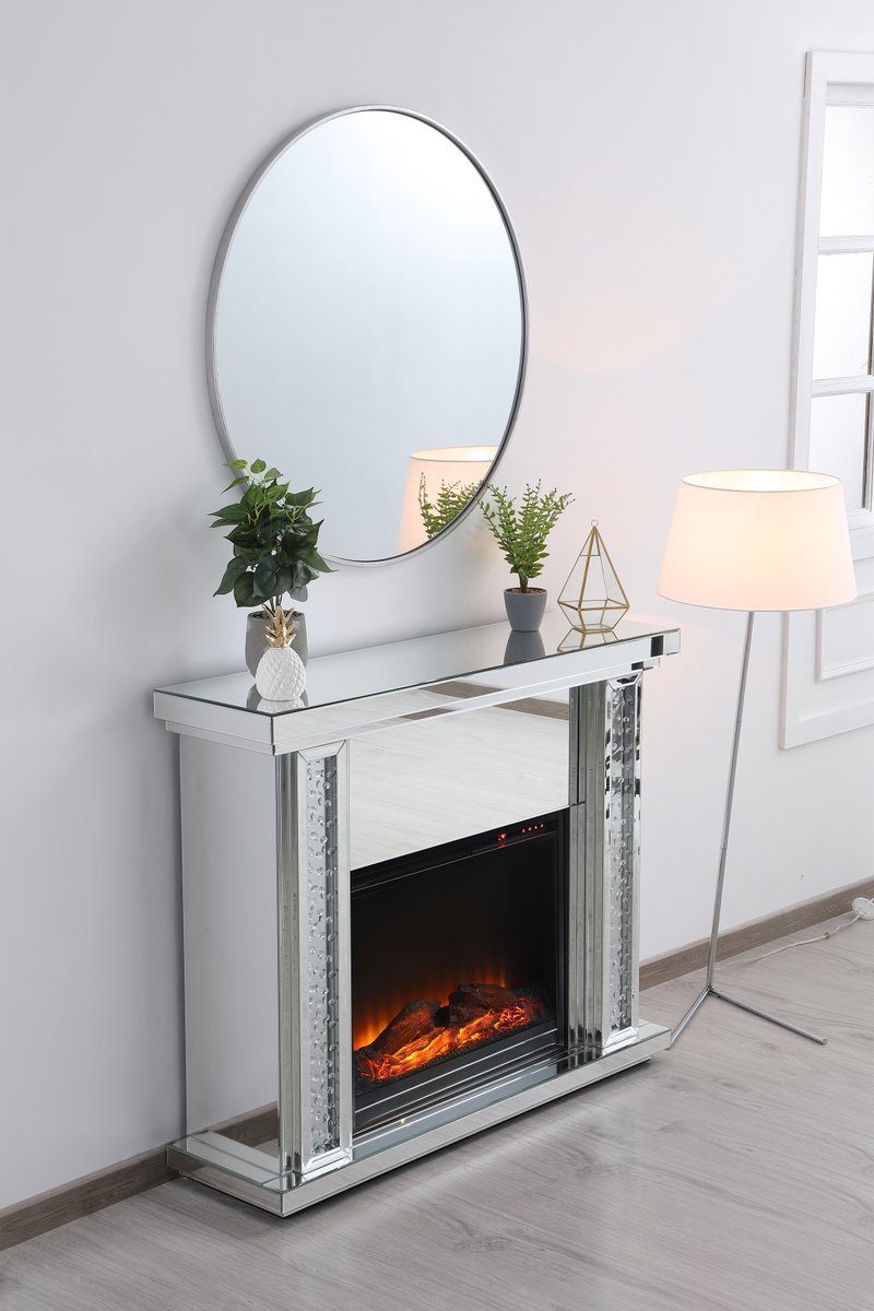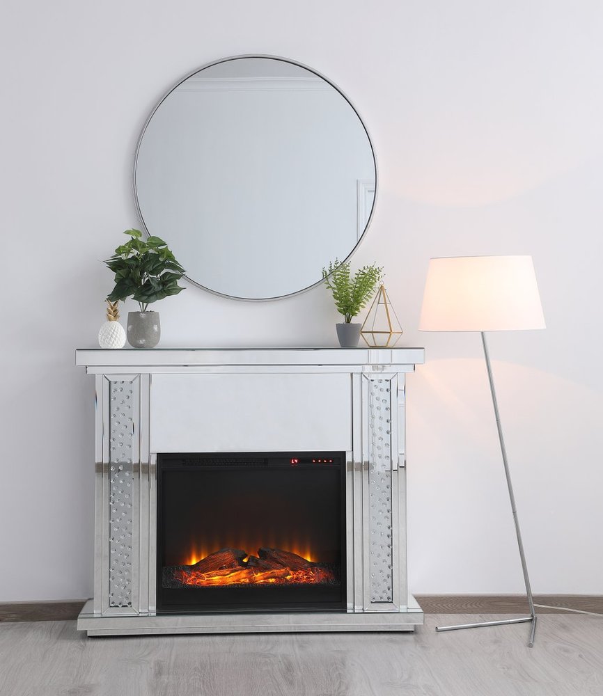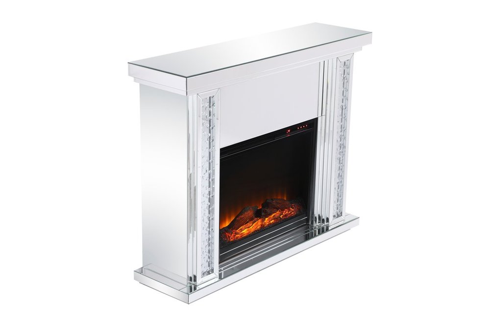 Live lavishly and sip on a glass of bubbly as the fire crackles in the wood log insert. The sparkling clear crystals embedded in the columns glisten and gleam with an air of leisurely beauty, while the mirror panels offer splendid grandeur. Create a scene of indulgence by adorning the mantle with your treasures--family portraits, prized works of art, or fragrant flowers.