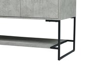 Live in modern comfort with this 48" concrete grey finish vanity. Dressed in a concrete grey and sleek black metal hardware, its contemporary style will have your bathroom or powder room elevated in industrial sophistication. The open shelf at the base and three doors reveal ample storage space for your bathroom essentials and miscellany. Clean lines create its own visual interest, adding trendy looks to your already chic room. Comes with a matching backsplash to complete the look and protects your wall.