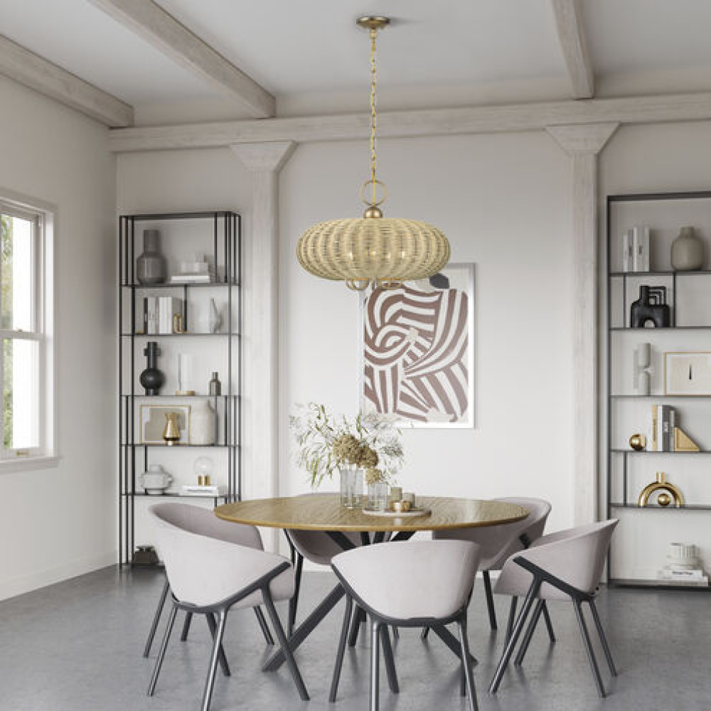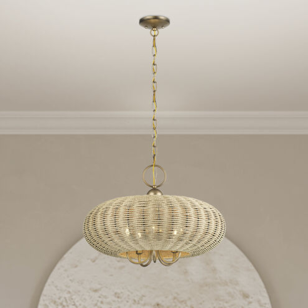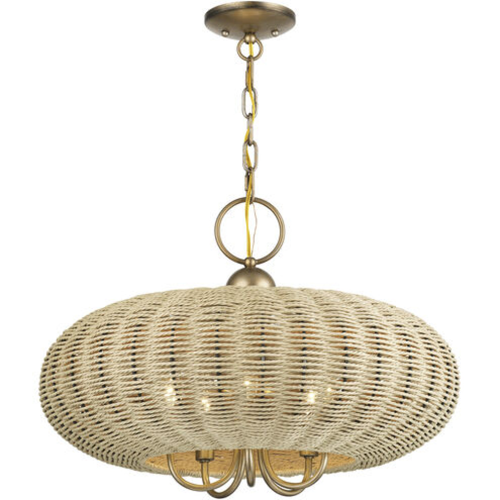 Whatever the season outside, there’s always a laidback beach house atmosphere indoors – with the sunny, transitional Summervine lighting collection. This natural-feeling, versatile ceiling and wall light design features slender, curved metal frames (in attractive metallic finishes) and luminous globe- and ellipsoid-shaped shades – handwoven with the remarkably durable and water-resistant paper rope material, finished in rich French beige.