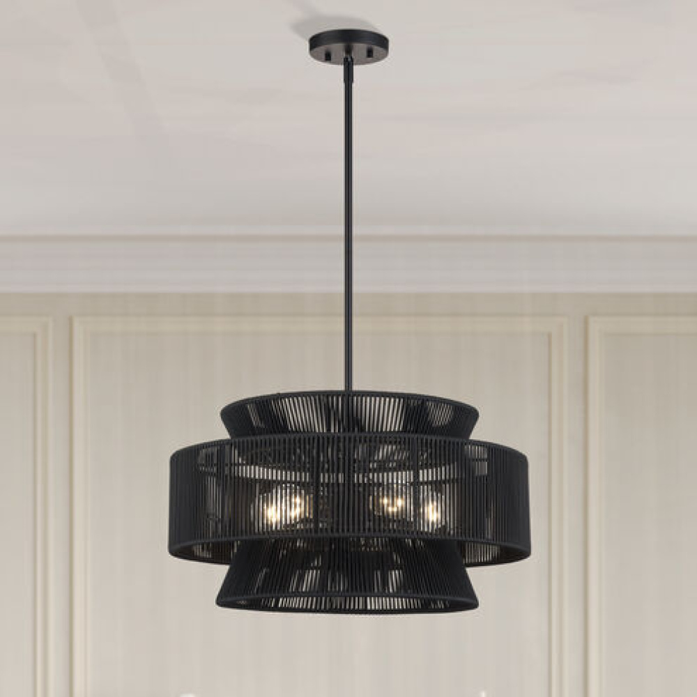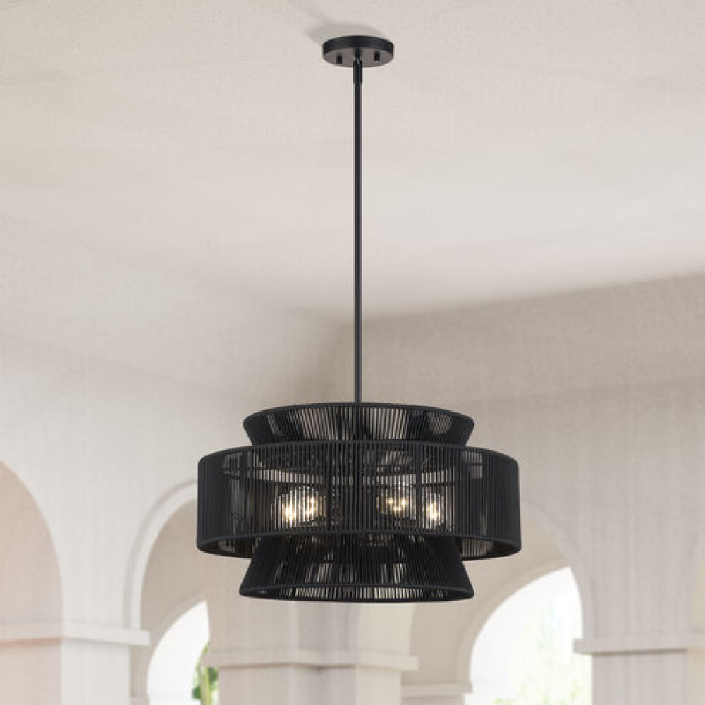 Laidback yet disciplined, the midcentury modern Florell lighting collection celebrates all versions of You: from “beach-haired weekender” to “visionary CEO”. with a vast selection in dramatic colors, this boho-inspired design features minimalist metal frames supporting drum-shaped, tapered and tiered shades – beautifully hand-threaded with sleek (fade- and fray-resistant) polyester rope. Semi-transparent texture allows for creating nuanced shadowing effects.