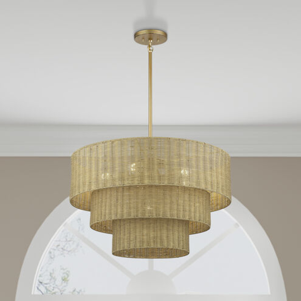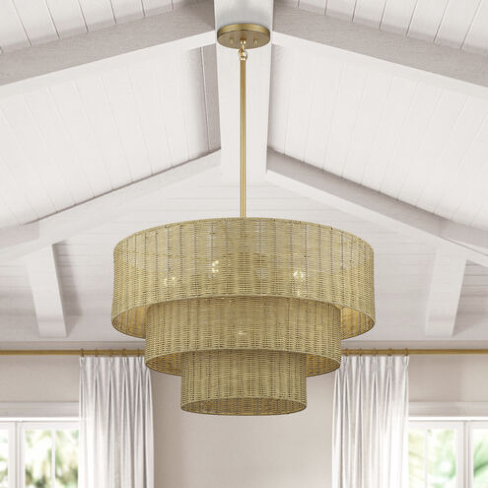 6 Light Antique Gold Leaf Large Pendant Chandelier