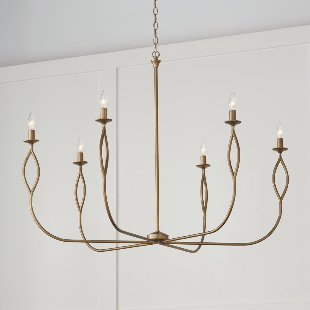 Illuminate luxury with the Cohen Large Chandelier. The elegant arms form curved, open details topped with bobeches and short candle sleeves, while the handcrafted Mystic Luster finish creates subtle shimmer and texture.