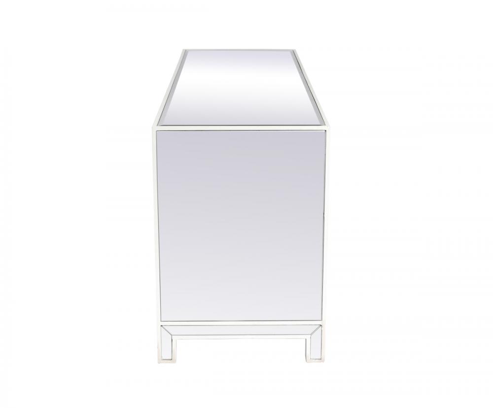 This TV stand is a showstopper with its clean white finish, clear mirror panels, and sparkling crystal knobs. It's a piece of furniture that adds a touch of glamour and sophistication to any room.
