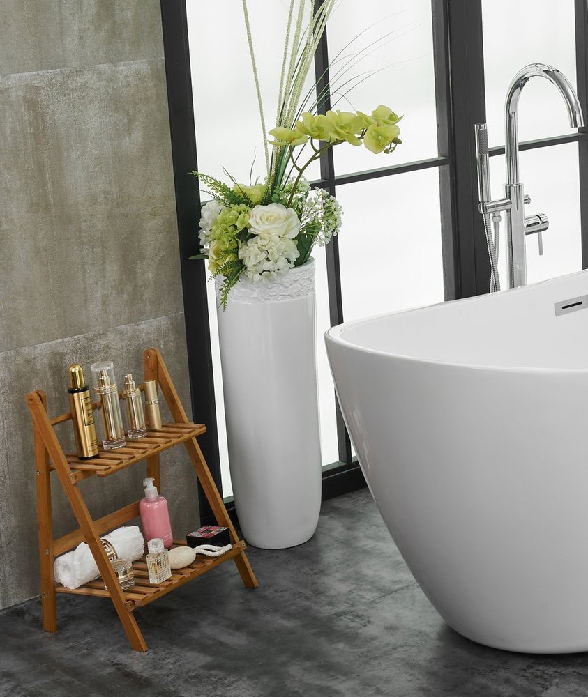 Adjustable leveling feet are included to stabilize the tub on any surface