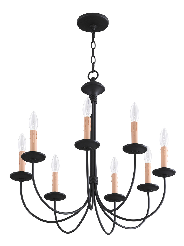 The Clean Design Of This Steel Construction Eight Light Chandelier Is Enhanced With A Black Finish. The Sweeping Arms Create A Slim Silhouette From Which The Candelabra Bulbs Emit Their Soft, Romantic Glow. Its Informal, Transitional Beauty Works Well With Many Room Decor Schemes.