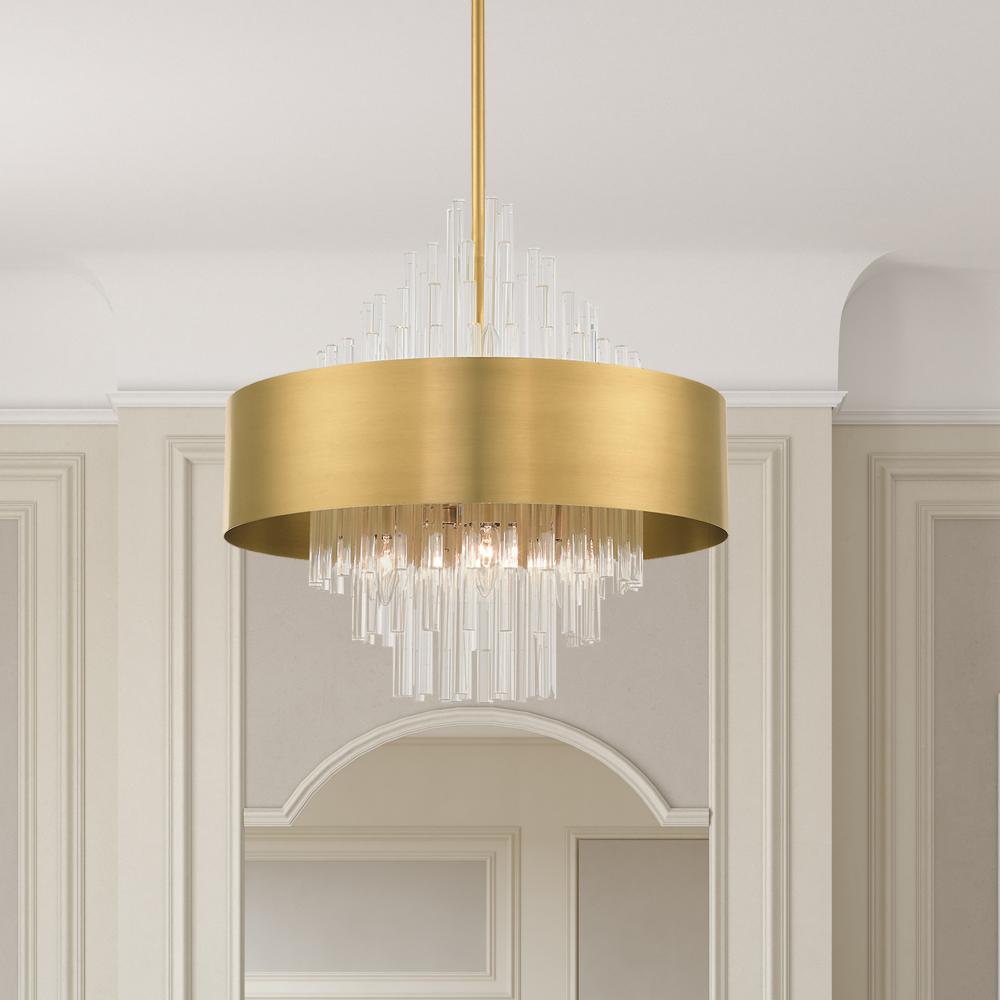 8 Lt Natural Brass Pendant Chandelier