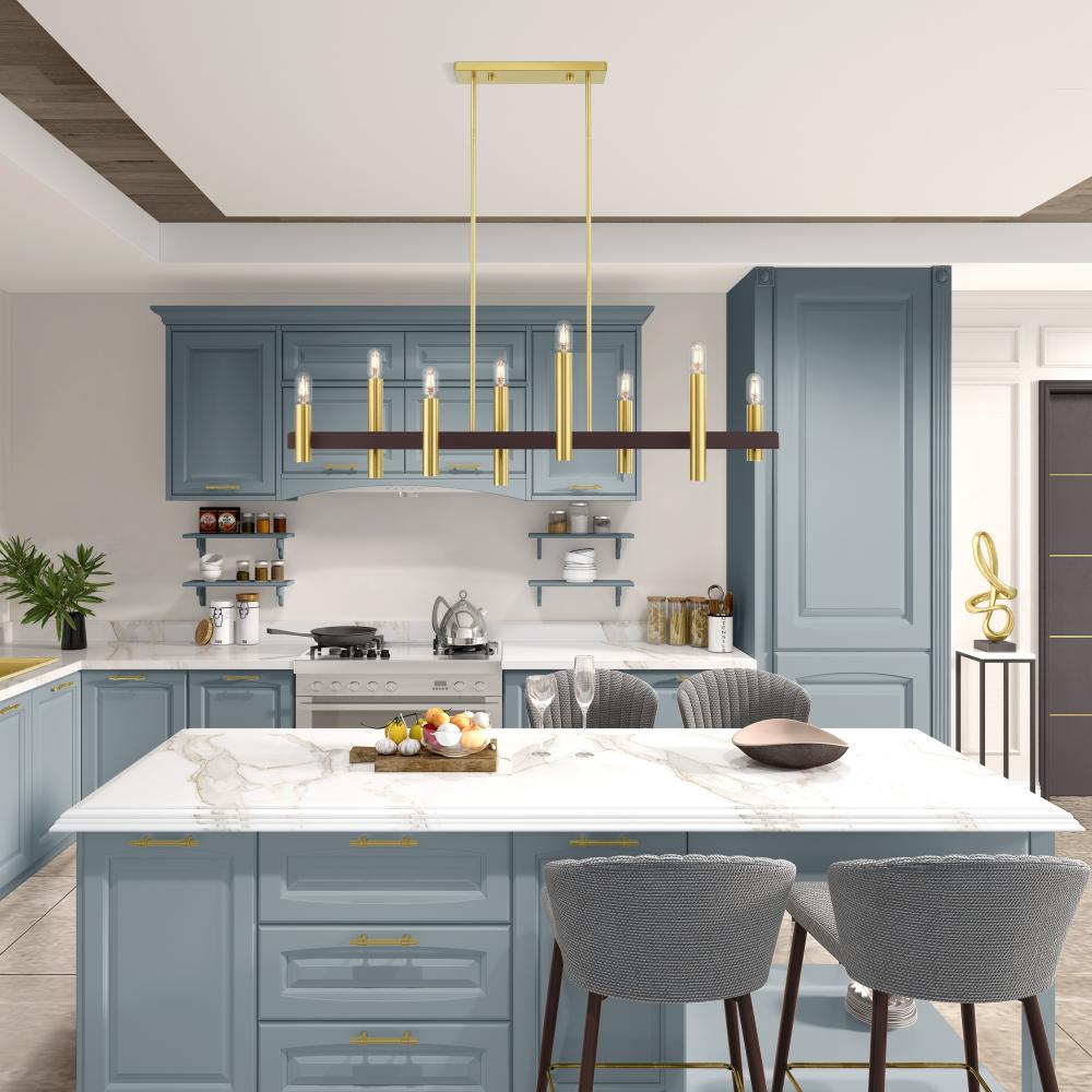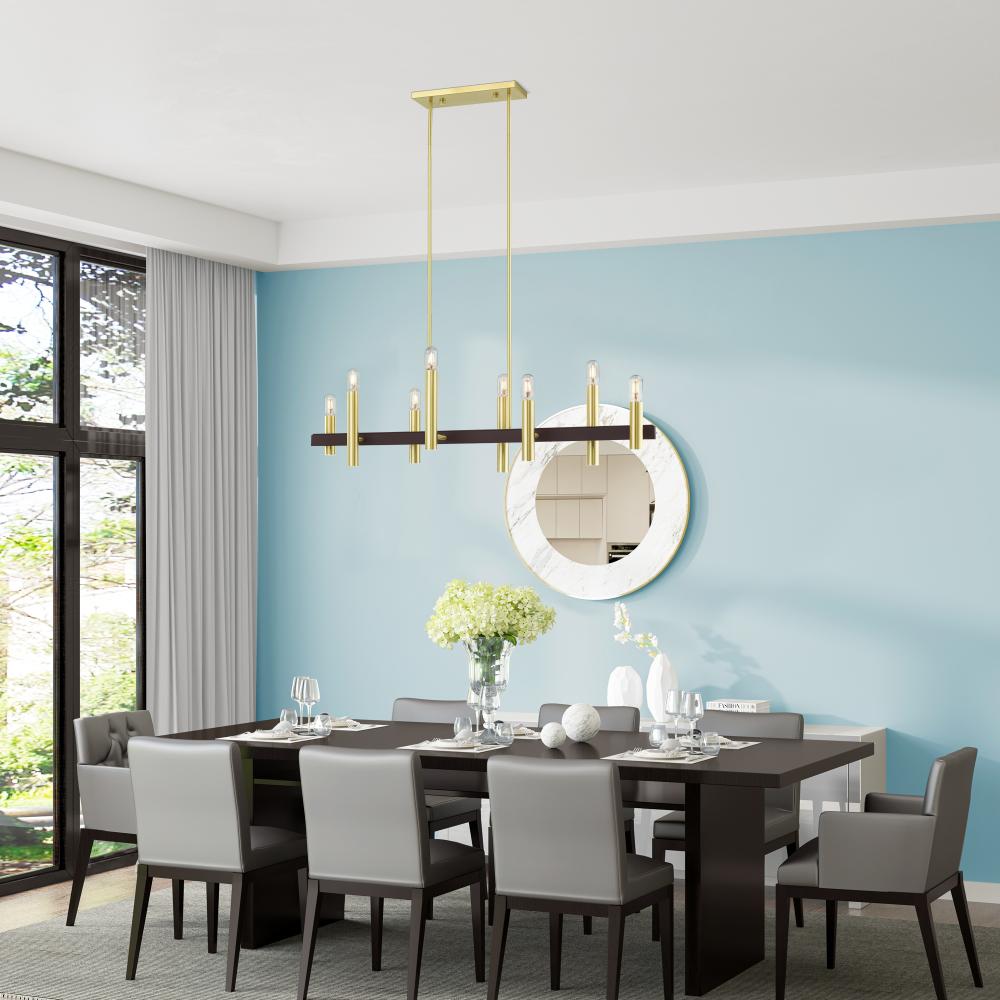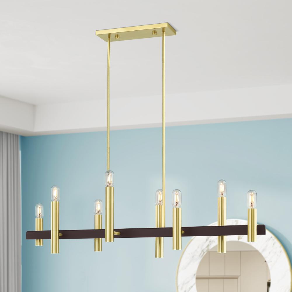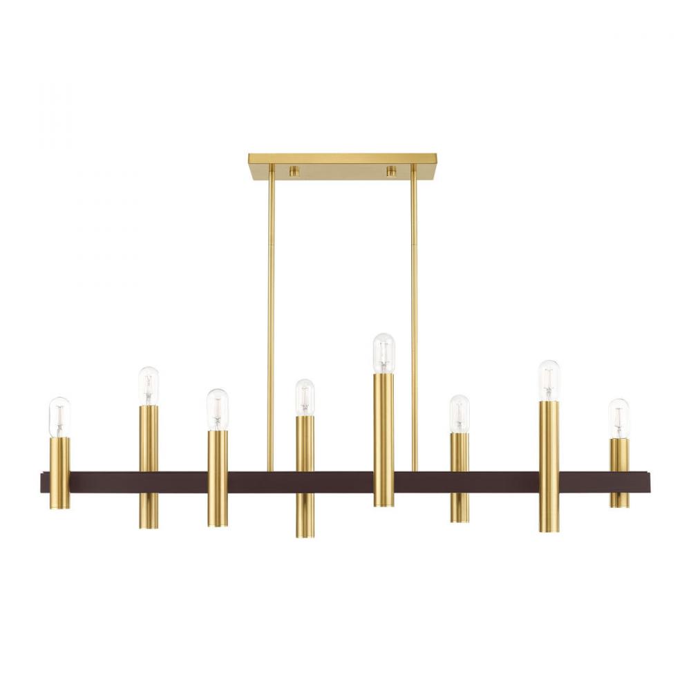 8 Light Satin Brass & Bronze Linear Chandelier