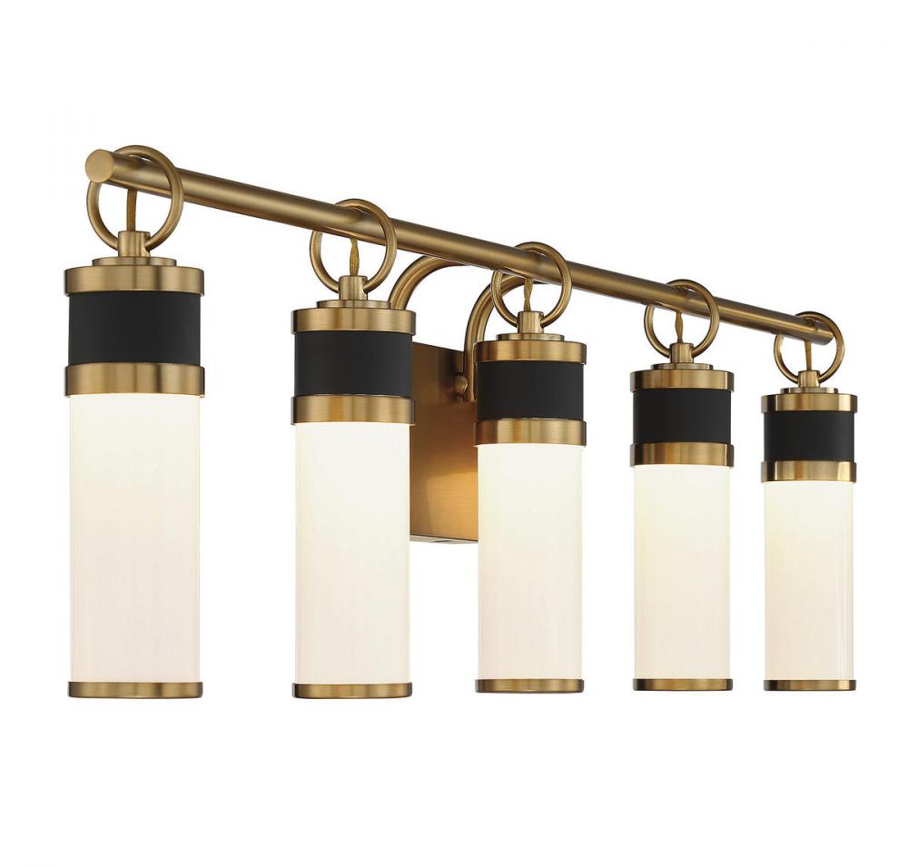Abel 5-Light LED Bathroom Vanity Light in Matte Black with Warm Brass Accents