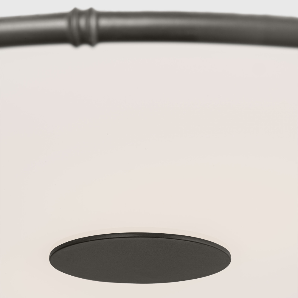 Crafted with Steel in a Aged Iron finish with silk screen white inside clear outside glass diffuser and white linen fabric shade
