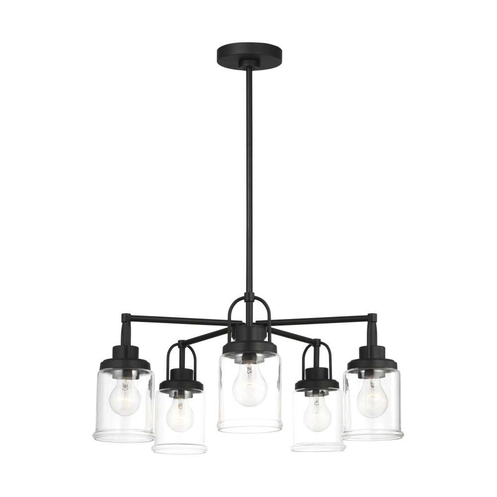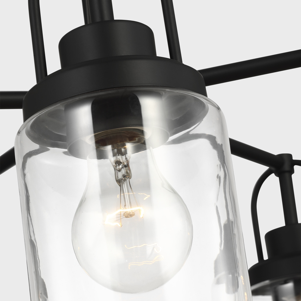 Crafted with Steel in a Midnight Black finish with clear glass shades