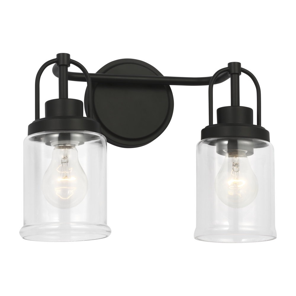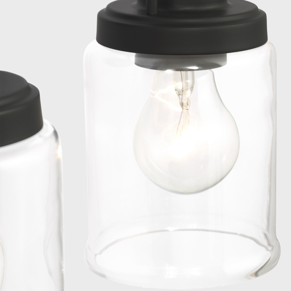 Crafted with Steel in a Midnight Black finish with clear glass shades
