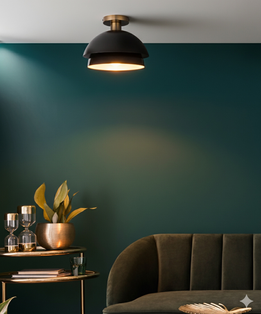 ANYA 1LT Semi Flush Mount Ceiling Fixture with Gold and Black Finishes