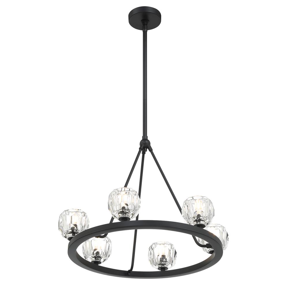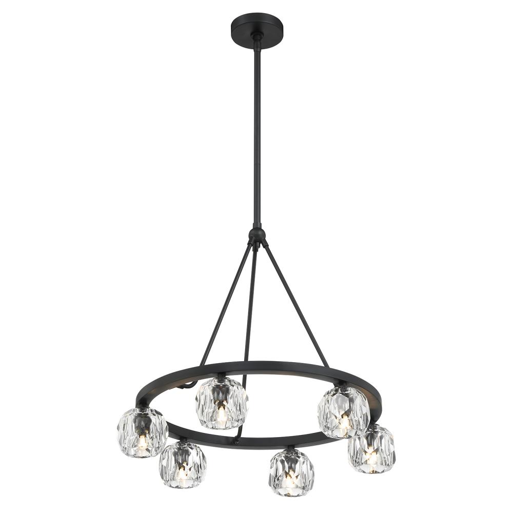 Finely crafted with great attention to detail, the Aragon Collection is a mix of industrial meets modern style. The Matte Black minimalist look includes rods attached to a large frame, facet-cut crystal globes and packed-in G9 Dimmable LED Bulbs, (rated at 3000K, 400 lumens and CRI 80). This functionally timeless fixture can be hung with upward or downward-facing light giving you the flexibility to choose how you would like to set the mood of the room.