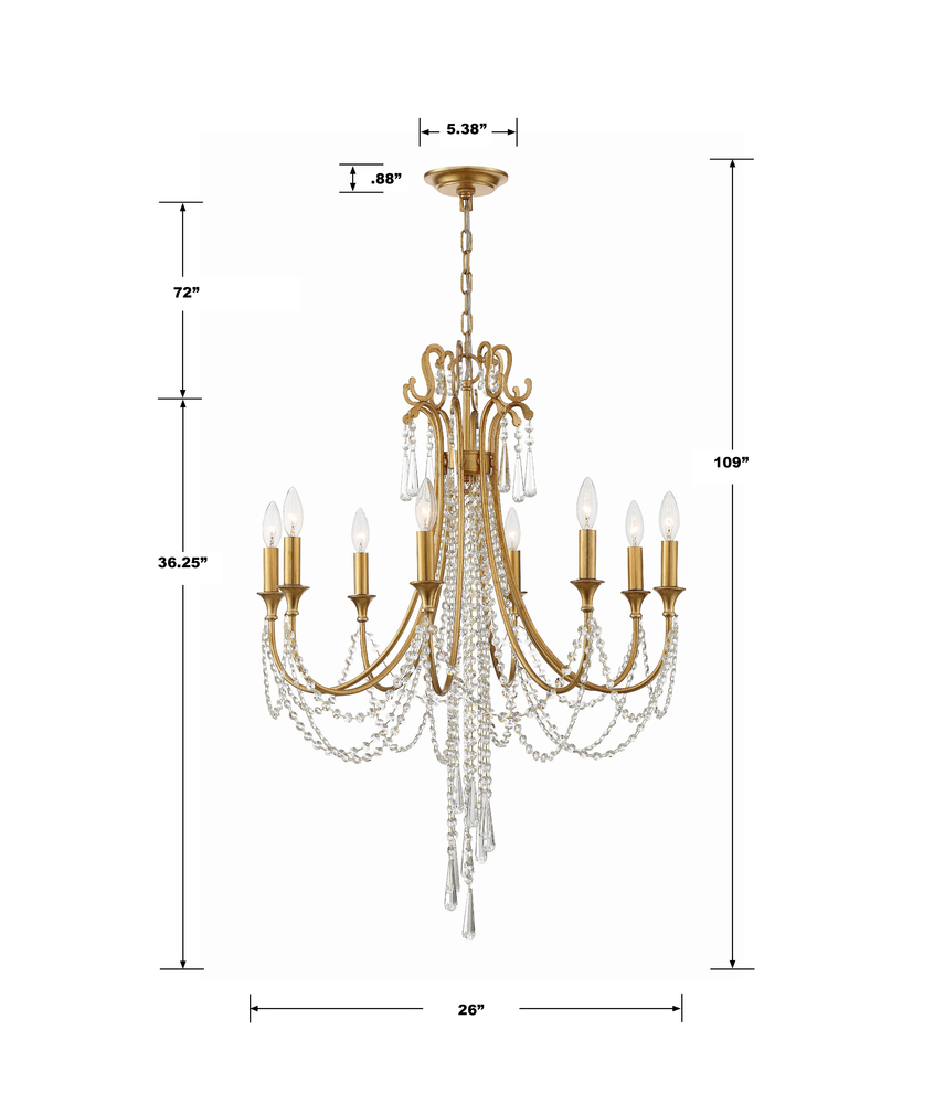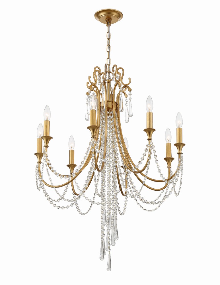 The Arcadia collection features a simple, transitional metal framework that is elegantly dressed with a beautiful crystal draping.