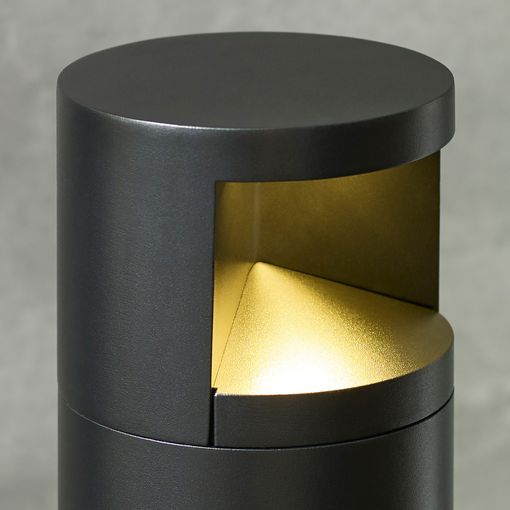 The Arkay Three LED bollard by Sean Lavin features an understated, contemporary design for outdoor lighting that blends beautifully with surrounding architecture and landscape details. The Arkay Three bollard is topped with a band of light that aims symmetrical illumination downward to create controlled pools of light, ideal for outdoor path and campus illumination. Available in modern finish options.