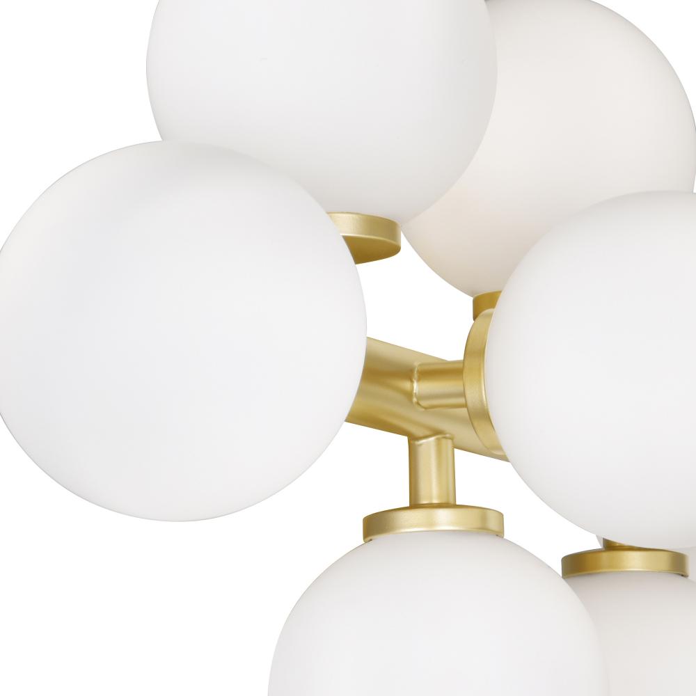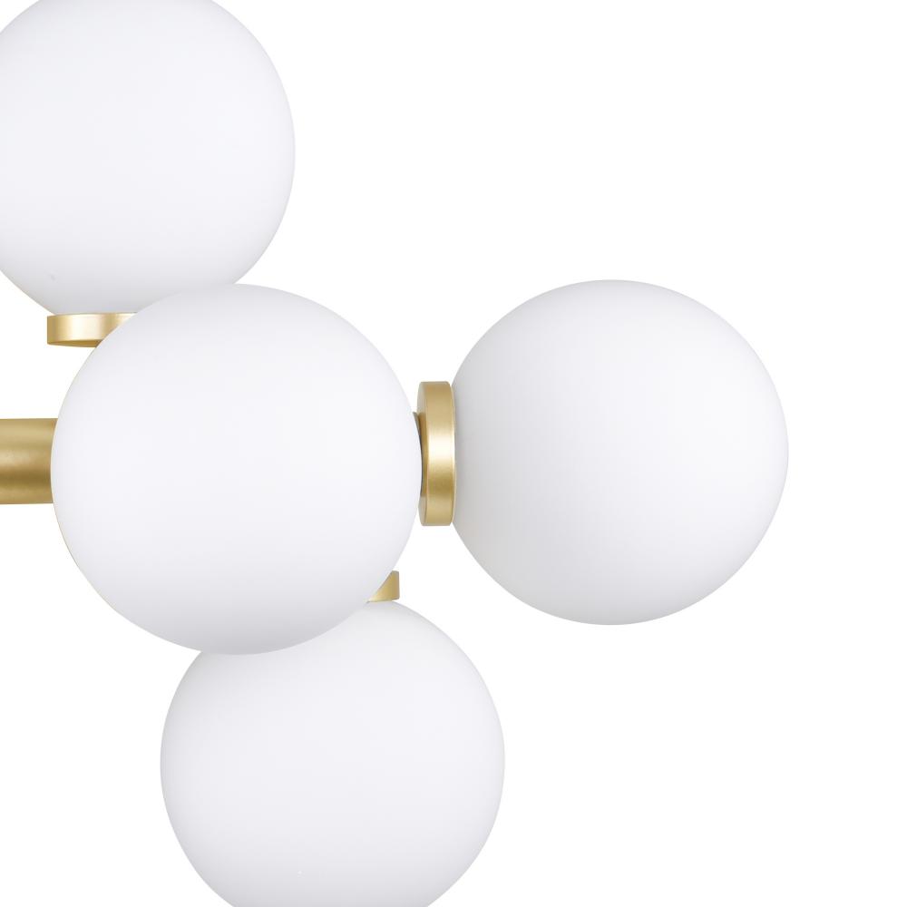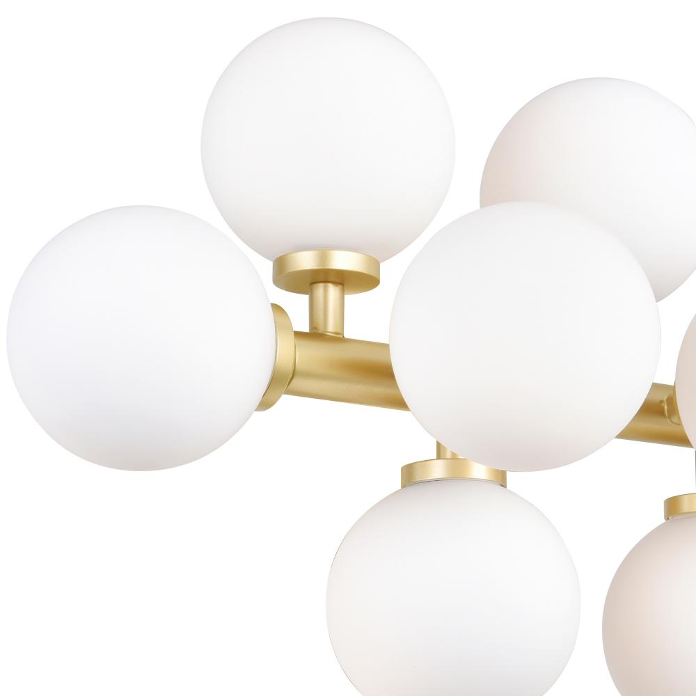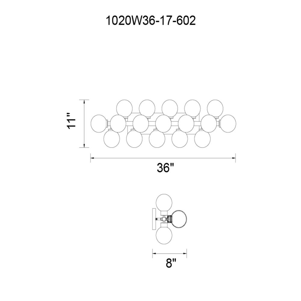 Elegant Geometry: 36-inch wall sconce in satin gold with 17 frosted glass globes for refined visual appeal