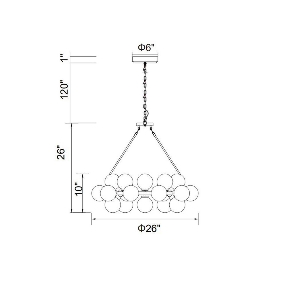 Bring the Sky Indoors The Arya 25-Light Chandelier transforms your ceiling into a starry twilight canopy. Each frosted globe diffuses light like a miniature moon, creating an ethereal ambiance perfect for intimate dinners or tranquil evenings. Why It Belongs in Your Home: Celestial Drama, Grounded Design 26" size balances grandeur with residential proportions (ideal for 10x12 ft rooms). Mood-Enhancing Light Frosted glass softens shadows, flattering skin tones during gatherings or bedtime routines. Easy to Live With Satin gold finish pairs effortlessly with modern, traditional, or transitional decors. Perfect For: Dining rooms where memories are made, bedrooms craving serenity, or kitchens that deserve a touch of magic. A fixture that elevates everyday moments.