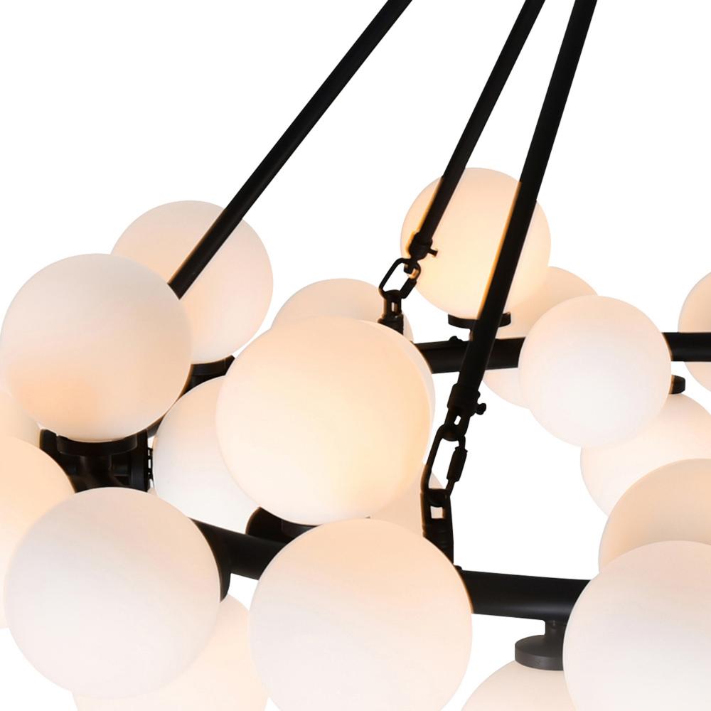 Command Attention with this Black Chandelier The Arya 70-Light Black Chandelier is a **showstopper designed for homes**. Its constellation of frosted globes suspended from a matte black frame delivers awe-inspiring light playperfect for spaces that crave depth and dimension. Why Homeowners Love It: Scale Without Overwhelm 39" diameter balances grandeur in rooms from 12x12 ft to open-concept lofts. Residential-Tuned Light Frosted glass softens output for cozy evenings or lively gatherings. Easy Customization Adjust chain length to center the fixture in rooms with standard or vaulted ceilings. Perfect For: Living rooms with high ceilings, modern farmhouse entryways, or dining areas where lighting becomes a conversation piece. Install as a standalone masterpiece to anchor your design.