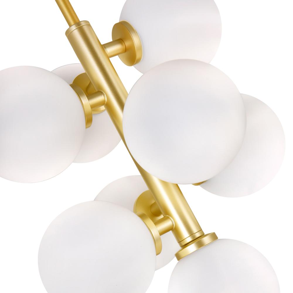 Miniature Chandelier Effect: Eight frosted glass globes create a starburst of soft light, offering chandelier grandeur in a compact 12" footprint