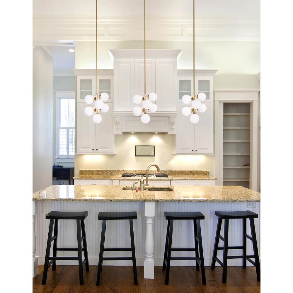 Petite Grandeur for Everyday Moments The Arya 8-Light Pendant proves big style comes in small packages. Its satin gold frame and clustered frosted globes deliver chandelier elegance without monopolizing your spaceideal for homes where every inch counts. Why It Elevates Your Space: Designer Density Eight globes in a 12" diameter maximize light output while maintaining a refined scale. Task-to-Ambiance Flexibility Use bright 4000K LEDs for cooking or warm 2700K for intimate dinners *(bulbs/dimmer sold separately)*. Timeless Palette Satin gold complements marble countertops, wood tables, or monochrome kitchens. Perfect For: Condo kitchens needing focal points, breakfast nooks craving charm, or dining areas where lighting should impress without imposing. Install 30-36" above surfaces.