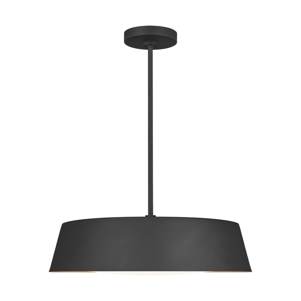 The Asher five-light indoor pendant in midnight black provides abundant light to your home, while adding style and interest. The Asher is contemporary with time-honored appeal in a low profile, yet large-scale silhouette that exudes understated elegance. Available in either a Midnight Black or Matte White exterior finish, both versions utilize an artisanal, hand-applied treatment of real gold leaf that lines the interior of the shade while a silk screen glass diffuser softens the illumination.