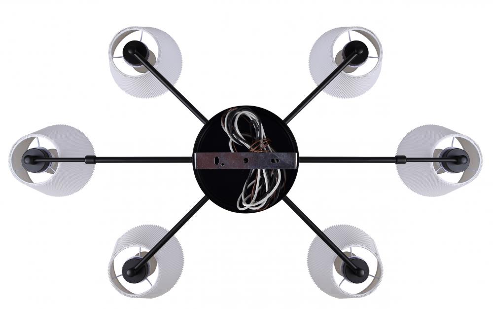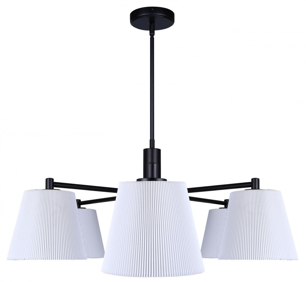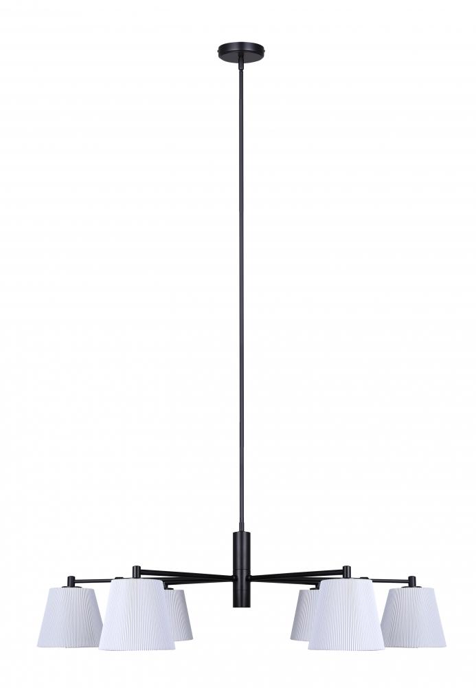 ASPEN, ICH1201A06BK, 6 Lt Rod Chandelier, White Ribbed Fabric Shade, 60W Type A, 35.25 - 56.25inch W x 15.25 - 63.5inch H x 26inch D