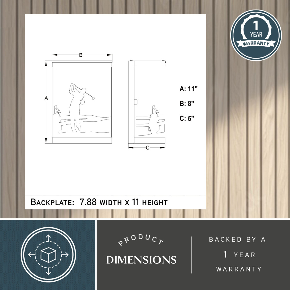 Perfect for the golf enthusiast, the Links 8-inch wall light lets you showcase your passion both inside and outside your home. Featuring a subtle yet stylish golfer motif showcasing your interests. This versatile fixture adds a touch of personality to your entryway, patio, garage, or even a dedicated sports room. The classic black finish and frosted white glass complement any decor, while providing soft, diffused light.