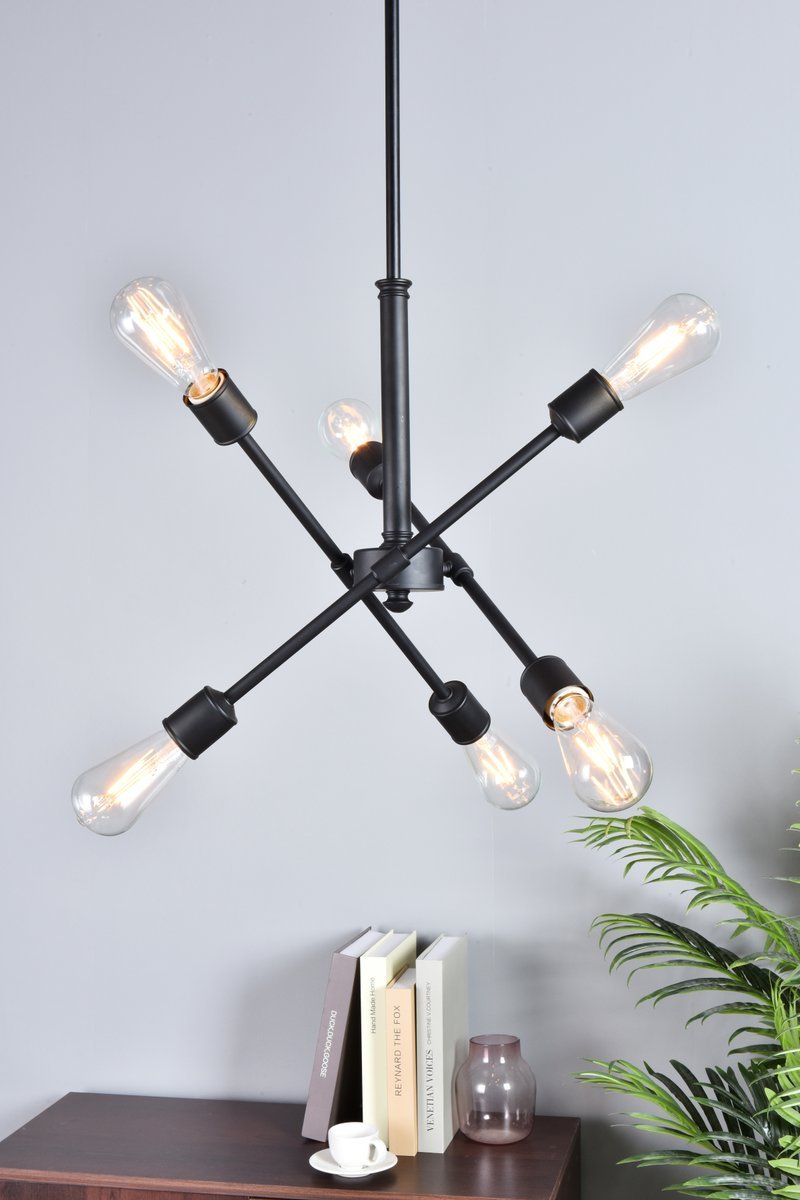 Axel 6 lights black pendant with hanging rod