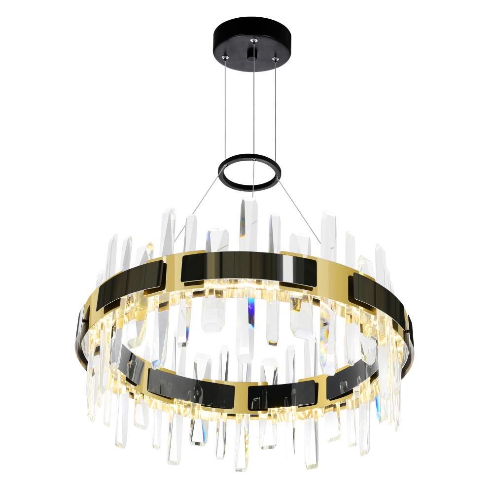 Make a bold and beautiful statement with the Aya 24'' Integrated LED Chandelier in Pearl Black. Designed with modern elegance and practical versatility in mind, this fixture adds sophistication to any space. Its adjustable hanging height makes it ideal for a variety of ceiling types, from standard to vaulted. Install it over your dining table, in the foyer, or even in a grand kitchen island area to deliver stunning style and ambient light. Finish: Pearl Black Fixture Width: 24" Hanging Height: Adjustable Light Source: Integrated LED Style: Modern / Glam