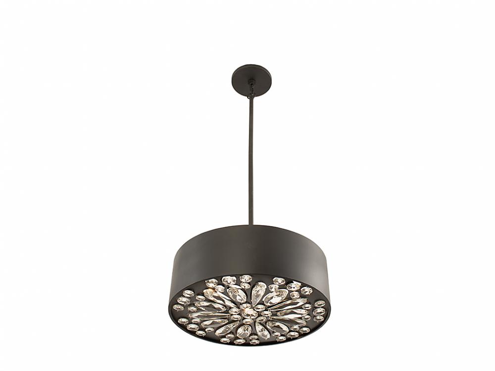 The Savoy House Azores 4-light semi-flush mount has a fashionable yet unassuming look until you observe it from below. When viewed from that angle, you can see an array of beautiful faceted crystal gems in a flower-like shape. Whether the lights are on or off, Azores is sure to shine. Finished in matte black. This light can also be used as a hanging pendant. Azores is 6" in height and 18" in width. It uses 4 candelabra size bulbs of up to 60 watts each (bulbs not included). Comes with four 12" downrods and one 6" downrod.