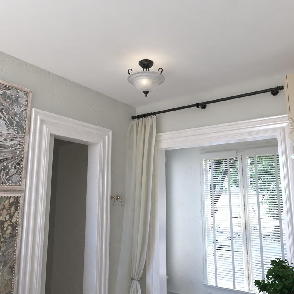 The curved arms and white alabaster glass are the key elements of this transitional collection. The well-balanced design details highlight the natural beauty of the materials and are perfectly combined to create a sophisticated, elegant statement. The Babylon collection is offered in multiple finishes. Medium screw base lamping provides maximum light output, and flexibility in bulb choice. This versatile fixture can be installed two ways; mount as a semi flush ceiling fixture or use the chain to mount as a pendant.