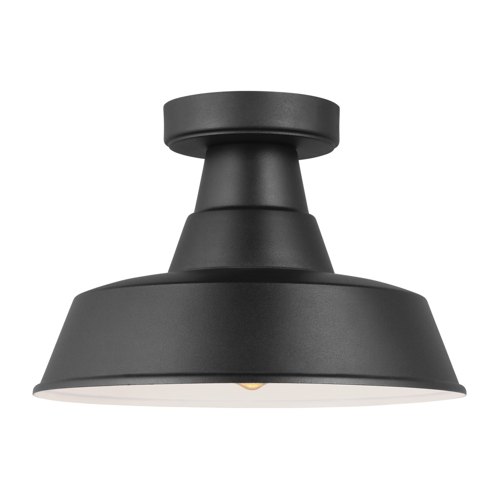 The Barn Light one light outdoor ceiling fixture in black creates a warm and inviting welcome presentation for your home's exterior. The classic Barn Lights are hand crafted in aluminum and coated in a Galvanized or Blacksmith finish. Ideal for large or heavily trafficked outdoor areas that need plenty of downward directed light. The oversized Barn Lights make great accents to any commercial lighting plan or residential garage entry, shed, or patio. To customize your look, a 6" extender is included with every fixture. Also available as Dark Sky with four size options to choose from.