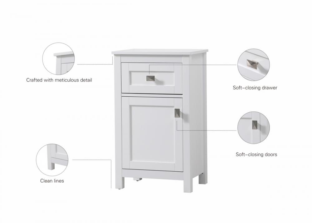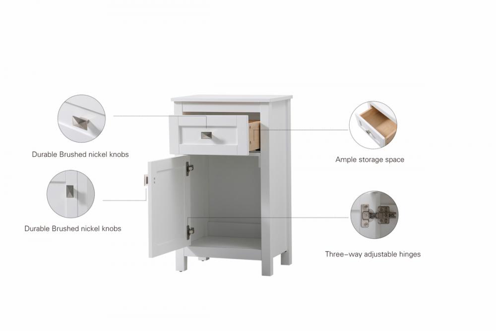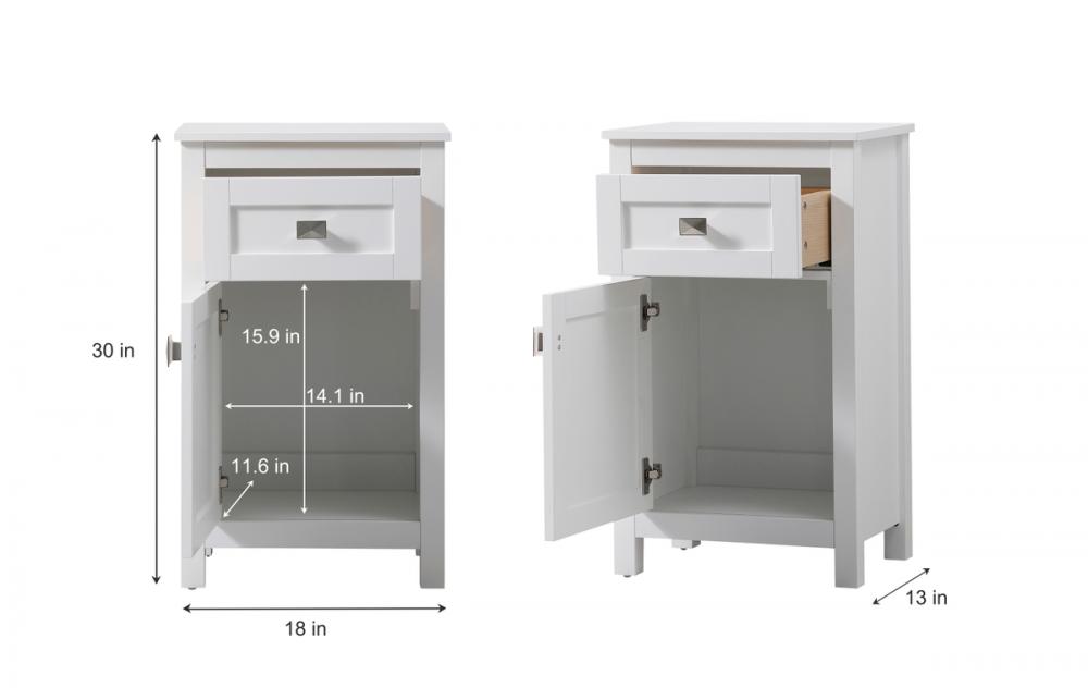 Our bathroom vanity storage cabinet, measuring 18"W x 30"H x 13"D, seamlessly combines style and functionality. With a generous drawer for organized storage, soft-closing technology adds convenience and durability. Shipped fully assembled, it eliminates complex installations, and the interior drawer enhances aesthetic appeal. The deep cabinet offers ample space for essentials, made durable with high-quality MDF construction. Choose from various colors and sizes to match your decor, and the decorative pull and rectangle knob made of zinc alloy provide a stylish finishing touch. This cabinet ensures a clutter-free and sophisticated bathroom space.