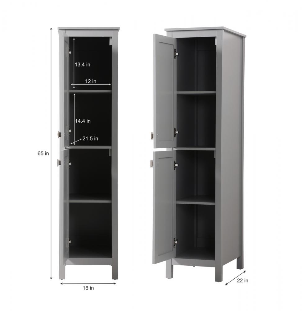 Measuring 16" W x 65" H x 22" D, our linen storage cabinet is compact enough to fit into various spaces while offering substantial storage capacity.