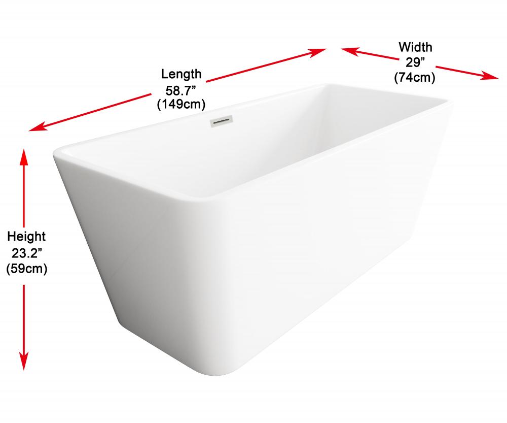 Immerse yourself in the ultimate relaxation experience with this elegant freestanding soaking bathtub. for a modern, minimalist aesthetic, the rectangular freestanding bathtub is the perfect choice. Its sharp, clean lines and structured form bring a contemporary edge to any bathroom. The smooth, rounded rim offers comfortable arm support, making it the ideal spot to unwind. Equipped with a pop-up drain and integrated overflow, this tub seamlessly combines convenience and style. with a generous capacity and 15-inch soaking depth, it's perfect for those looking to indulge in a deep, luxurious soak. Available with customizable drain trim finishes like brushed gold, matte black, and more, this bathtub is designed to fit your unique style. Durable and easy to install with adjustable foot levelers, this tub is both a statement piece and a functional retreat in your home.