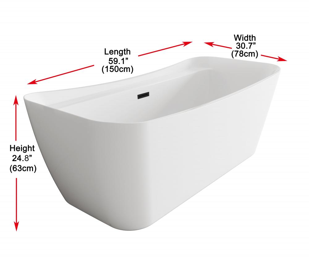Bathtub 59.1x30.7x24.8 GW with BGD drain kit