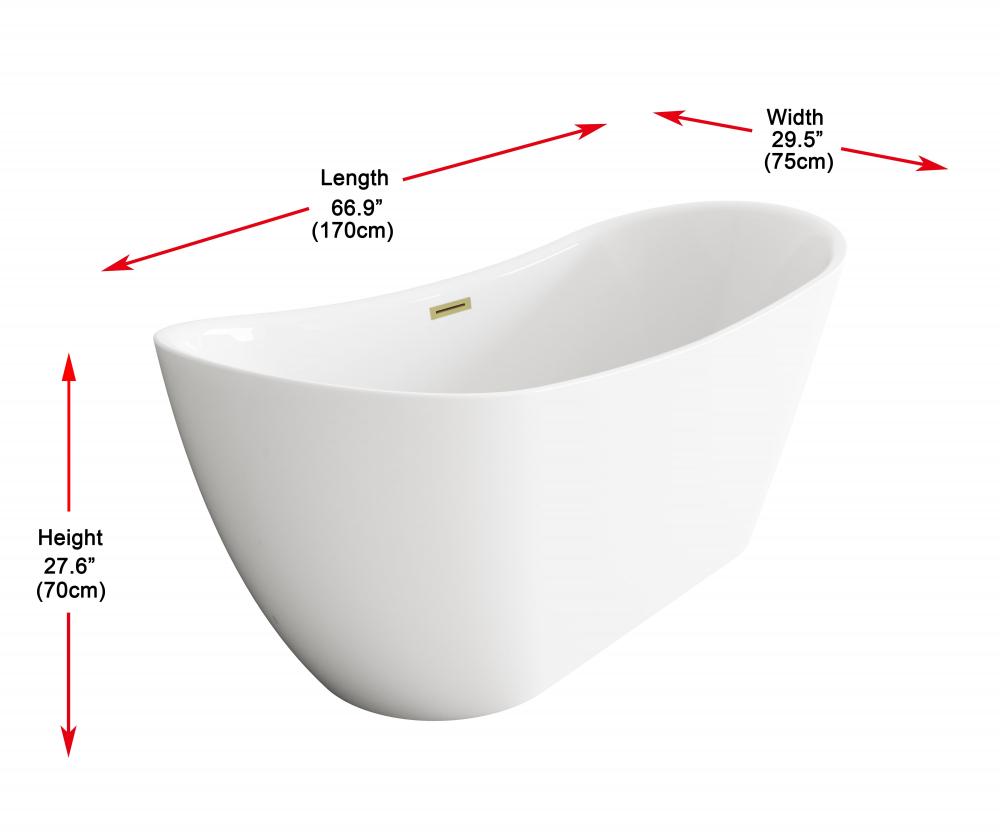 Bathtub 66.9 x 28.3 x 27.6 GW with BGD drain kit