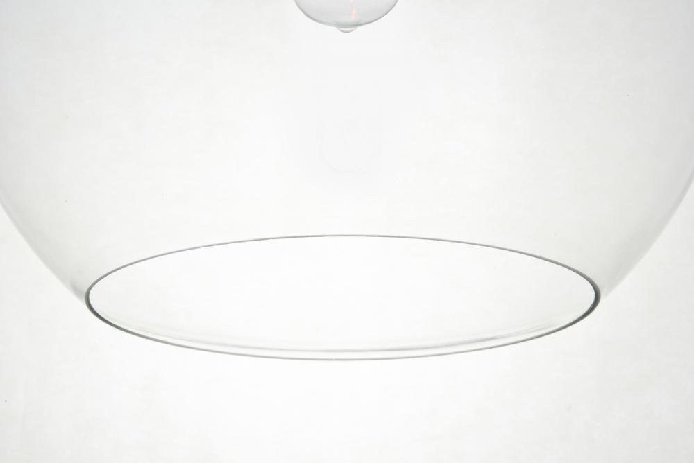 Feature 2: spherical clear glass shade with open center for easy bulb replacement