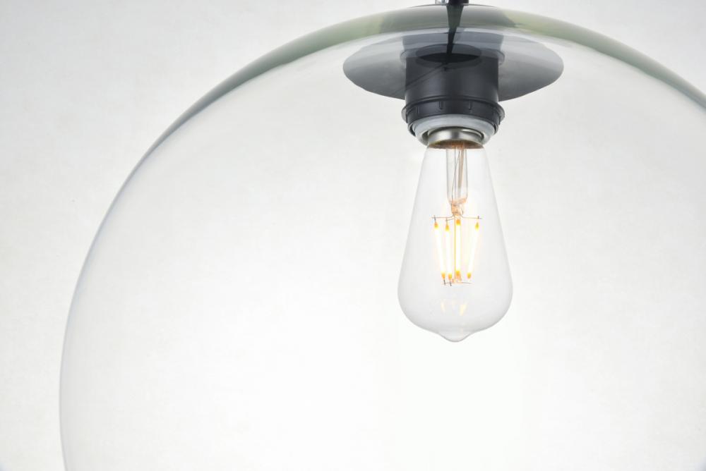 Refined style with a practical design, Baxter hanging pendant lamps bring cosmopolitan sophistication anywhere, especially to an entryway, office, bathroom, bedroom, or kitchen. The smooth iron frame features a disk-shaped canopy and comes in a black finish. An adjustable black cord allows you to vary the hanging height from 20 to 73 inches. The clear spherical glass shade remains open at the center to allow for effortless replacement of the filament-style bulb (not included). Living in the big city has never been this easy.