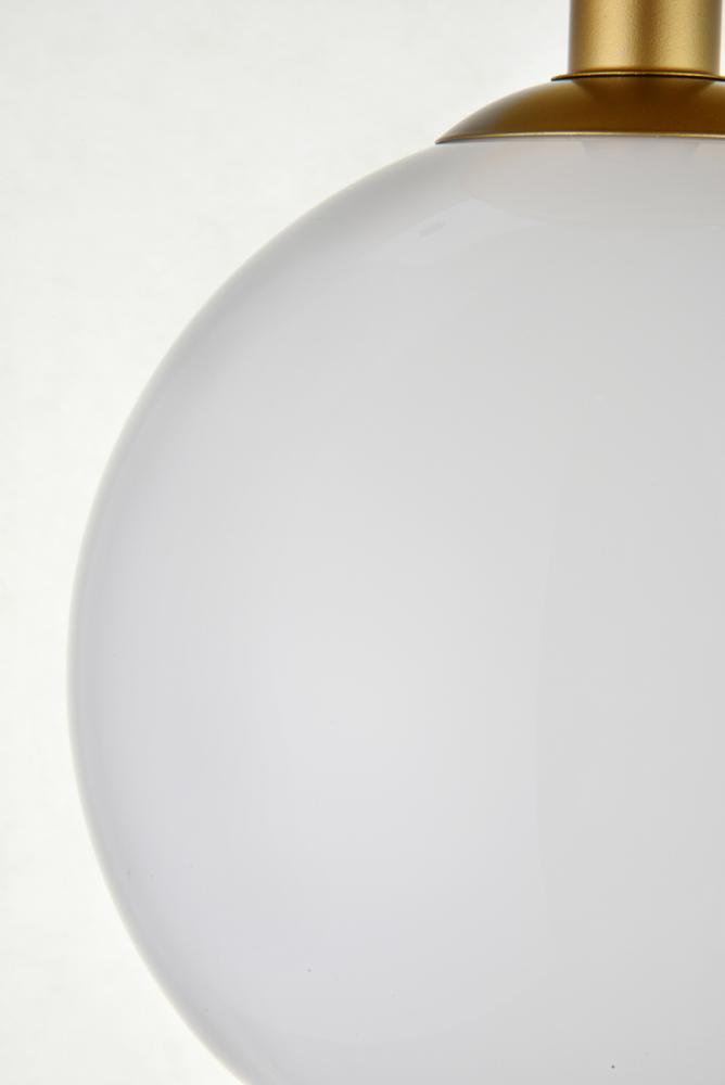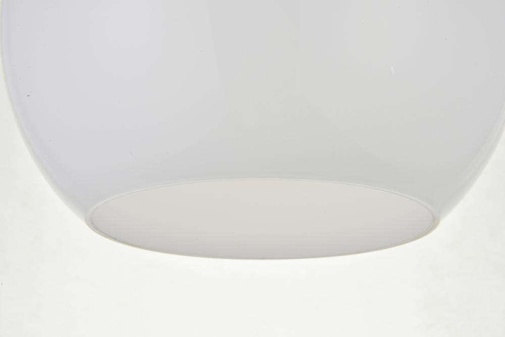 Feature 2: spherical frosted white glass shade with open center for easy bulb replacement