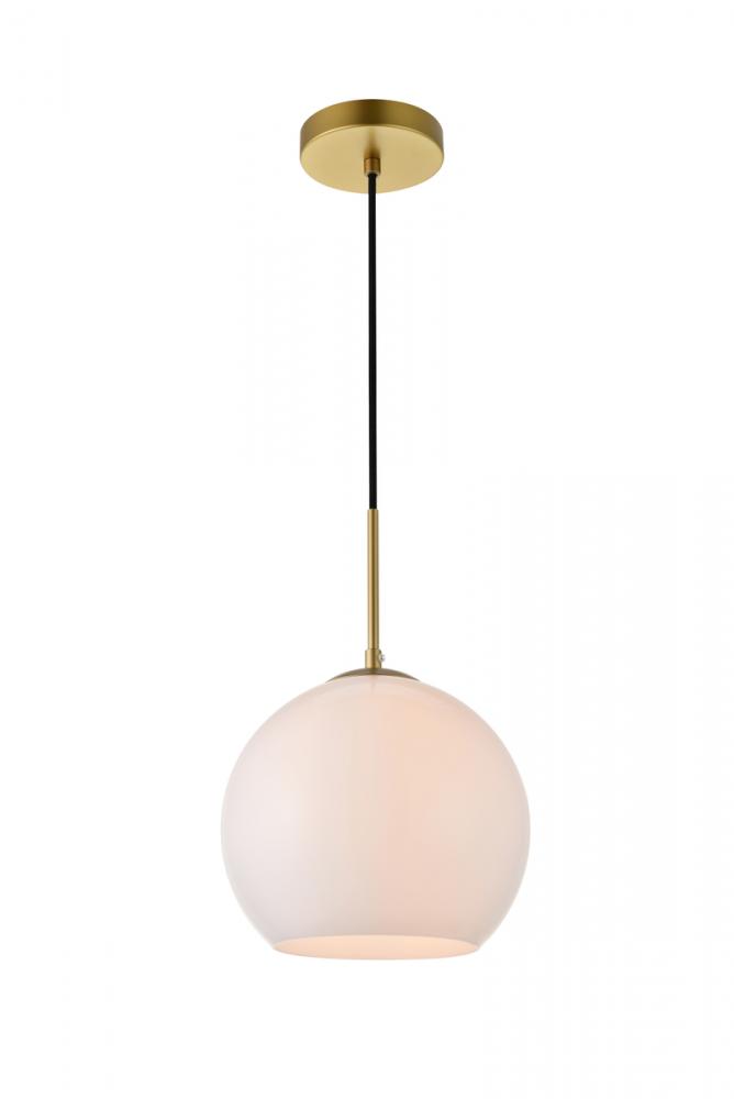 Refined style with a practical design, Baxter hanging pendant lamps bring cosmopolitan sophistication anywhere, especially to an entryway, office, bathroom, bedroom, or kitchen. The smooth iron frame features a disk-shaped canopy and comes in a brass finish. An adjustable black cord allows you to vary the hanging height from 16 to 70 inches. The frosted white spherical glass shade remains open at the center to allow for effortless replacement of the filament-style bulb (not included). Living in the big city has never been this easy.
