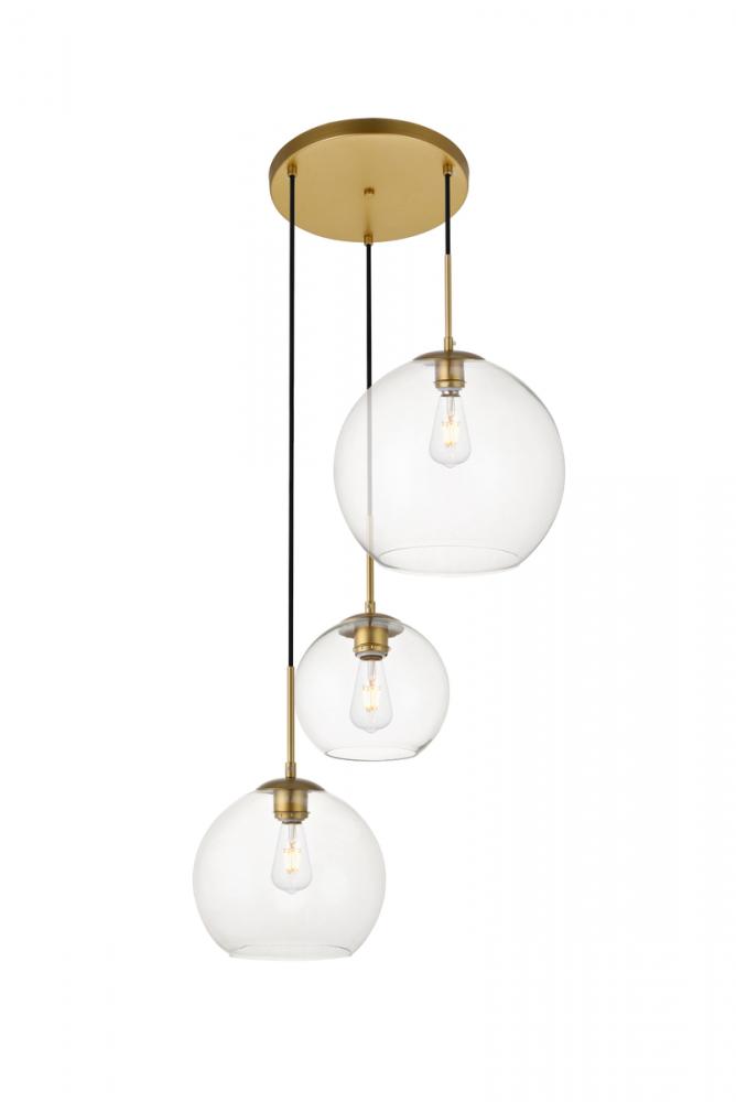 Refined style with a practical design, Baxter hanging pendant lamps bring cosmopolitan sophistication anywhere, especially to an entryway, office, bathroom, bedroom, or kitchen. The smooth iron frame features a disk-shaped canopy and comes in a brass finish. Adjustable black cords allow you to vary the hanging height from 18 to 87 inches. Three clear spherical glass shades of different sizes remain open at the center to allow for effortless replacement of the filament-style bulbs (not included). Living in the big city has never been this easy.