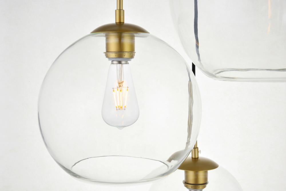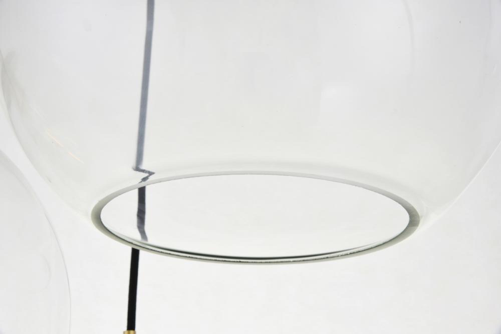 Feature 2: three different-sized spherical clear glass shades with open center for easy bulb replacement