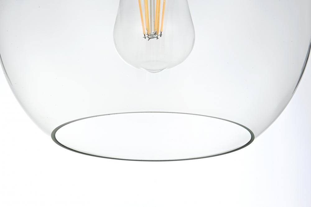 Features a clear glass shade, offering bright, unobstructed light and a clean, modern look.