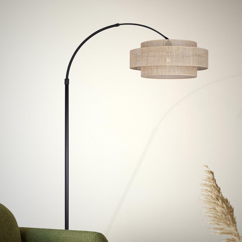 Warm and Textured Design: Elevate your decor with the BELLAMY floor lamp. Finished in Matte Black color, this lamp features a natural rattan shade that adds a touch of warmth and texture to any room, creating a cozy and inviting atmosphere.