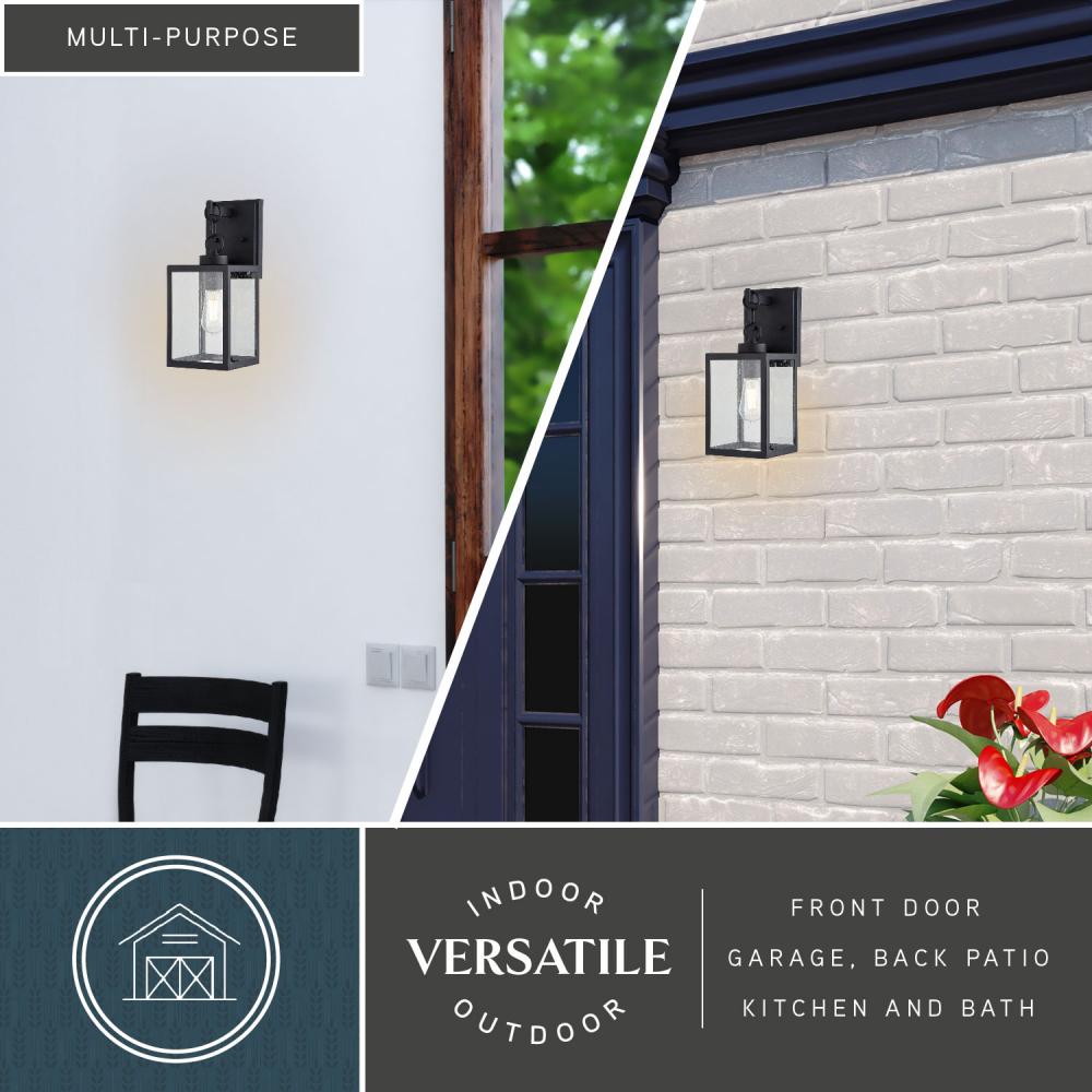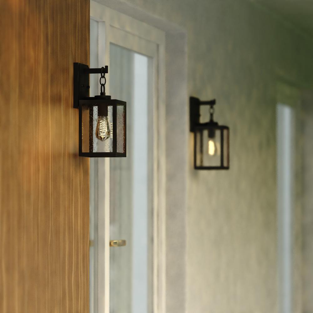 Add a touch of rustic industrial flair with the unique Barkley outdoor wall light. Its textured black finish, clear seeded glass, and chain handle feature create a distinctive artisan look. Perfect for entryways, patios, or any space where you want to create a bold statement.