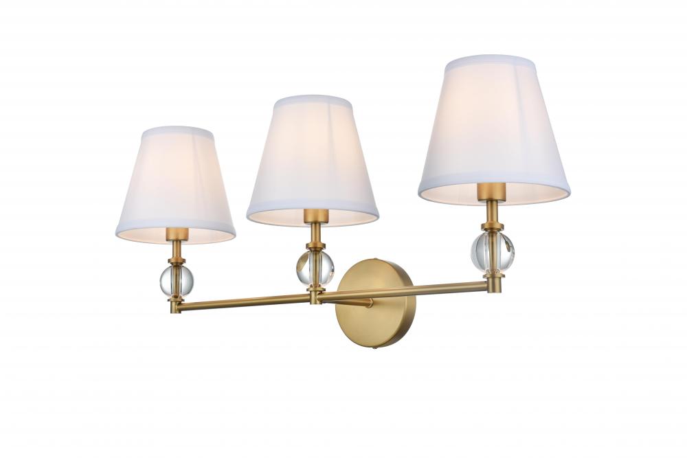 Bring a classic yet sophisticated touch to your home with this versatile wall sconce. Available in chrome, black, brass, or satin nickel finishes, this sconce is perfect for any room, from hallways to living rooms and bedrooms. The beautiful tapered fabric shade diffuses light warmly, creating a cozy and inviting ambiance. with its crystal glass accent, sleek metal arm, and compact round backplate, this fixture exudes timeless elegance that fits a wide range of interior styles. It uses three E12 socket bulb (not included) and is compatible with dimmable bulbs for ultimate lighting flexibility. with a maximum wattage of 120W, this wall sconce delivers the ideal level of light to brighten your space with style.