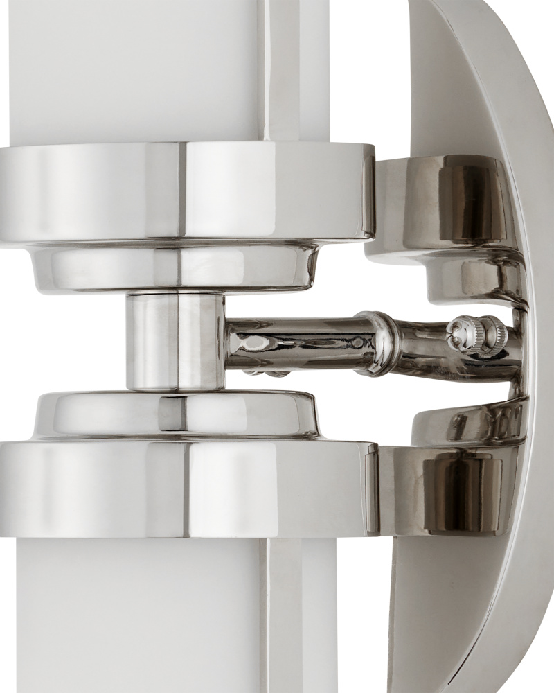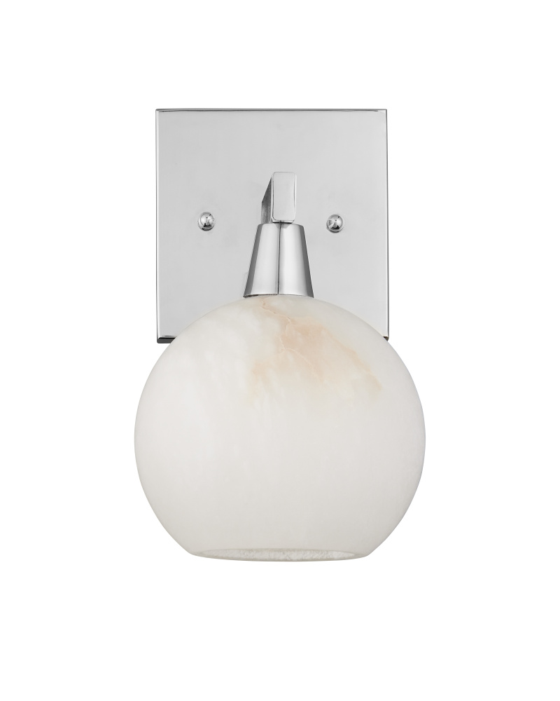 The Bombelles Nickle Bath Wall Sconce was designed to spread abundant light over a bathroom counter, the shiny silver sconce joining others in the Bath Collection. The globe will be luminous when it is lit, as it is made of natural alabaster, and the polished nickel finish on the metal intensifies the coolness of the design. Alabaster is a natural material, so there will be slight variations in each of the fixtures. The Bombelles can be mounted with the globe pointing up or down.